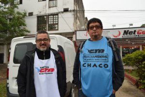 Desde la provincia del Chaco acompaña la movilización el Secretario General de UTRE-CTERA Carlos Cuevas;José Testoni,Secretario General de la CTA Santa Fé y Sec.Adjunto de AMSAFE CTERA; la CTA Fsa con el Diputado Rubén Chávez y Luis Branchi de ADF.